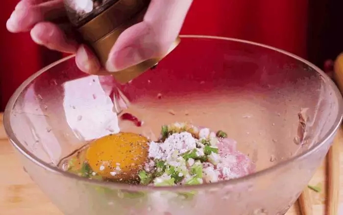 最好的加鹽時(shí)間,是在餡料充分?jǐn)嚢韬弥?,再加入鹽,當(dāng)然肉類餡料也適用這個(gè)原則~