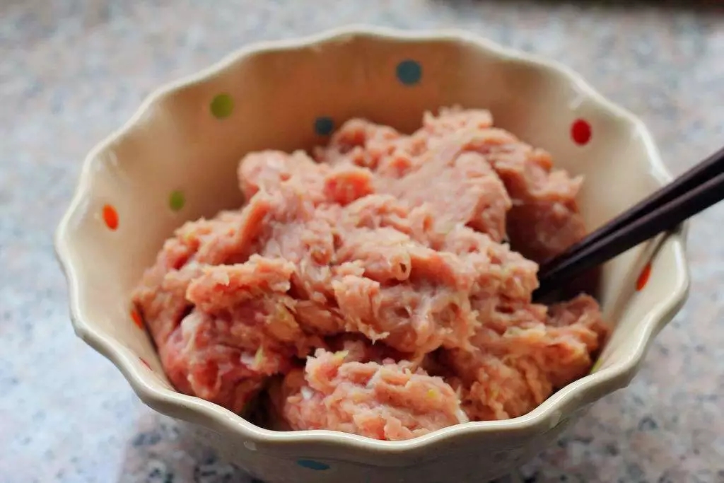 你會(huì)發(fā)現(xiàn),剁好之后的肉餡,跟沒剁的肉餡有一定的區(qū)別:剁好后肉餡會(huì)很有彈性!